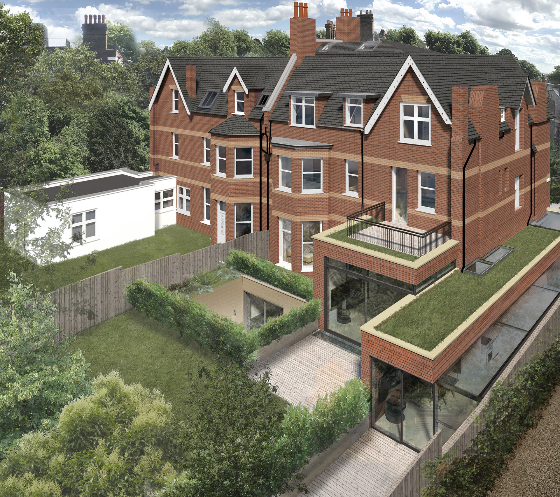 This stunning Victorian townhouse was completely reconfigured internally, and extended down into a large basement and sideways, replacing an post-war extension, ultimately being divided into 7 generously sized luxury apartments.