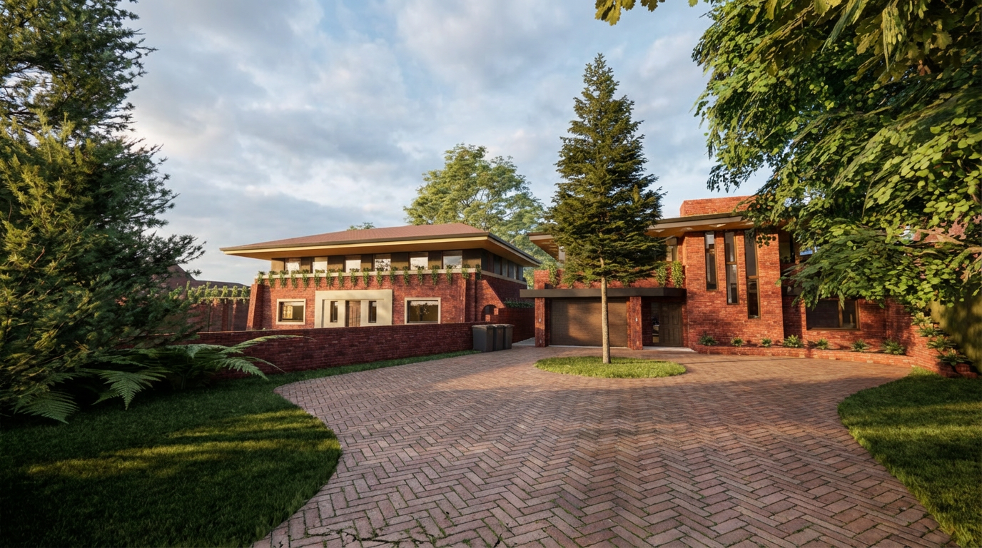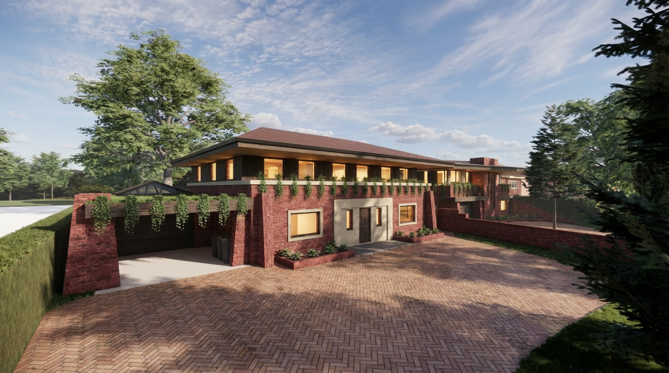 Mourne Wood replaces an existing bungalow with two 4-bedroom family homes, mixing the rural Hampshire vernacular style with Prairie school and Arts & Crafts elements to create a beautiful and interesting addition to a street of post-war houses.